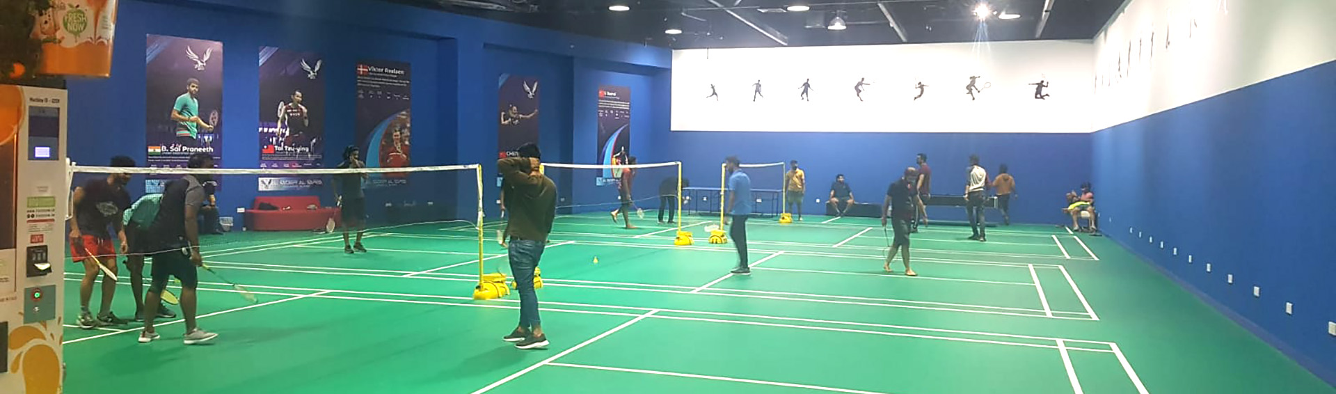50 Aed per hour. 75 Aed with 4 rackets and shuttle for one hour. 1200 Aed for 30 hours in a month. 900 Aed for 22 hours in a month.